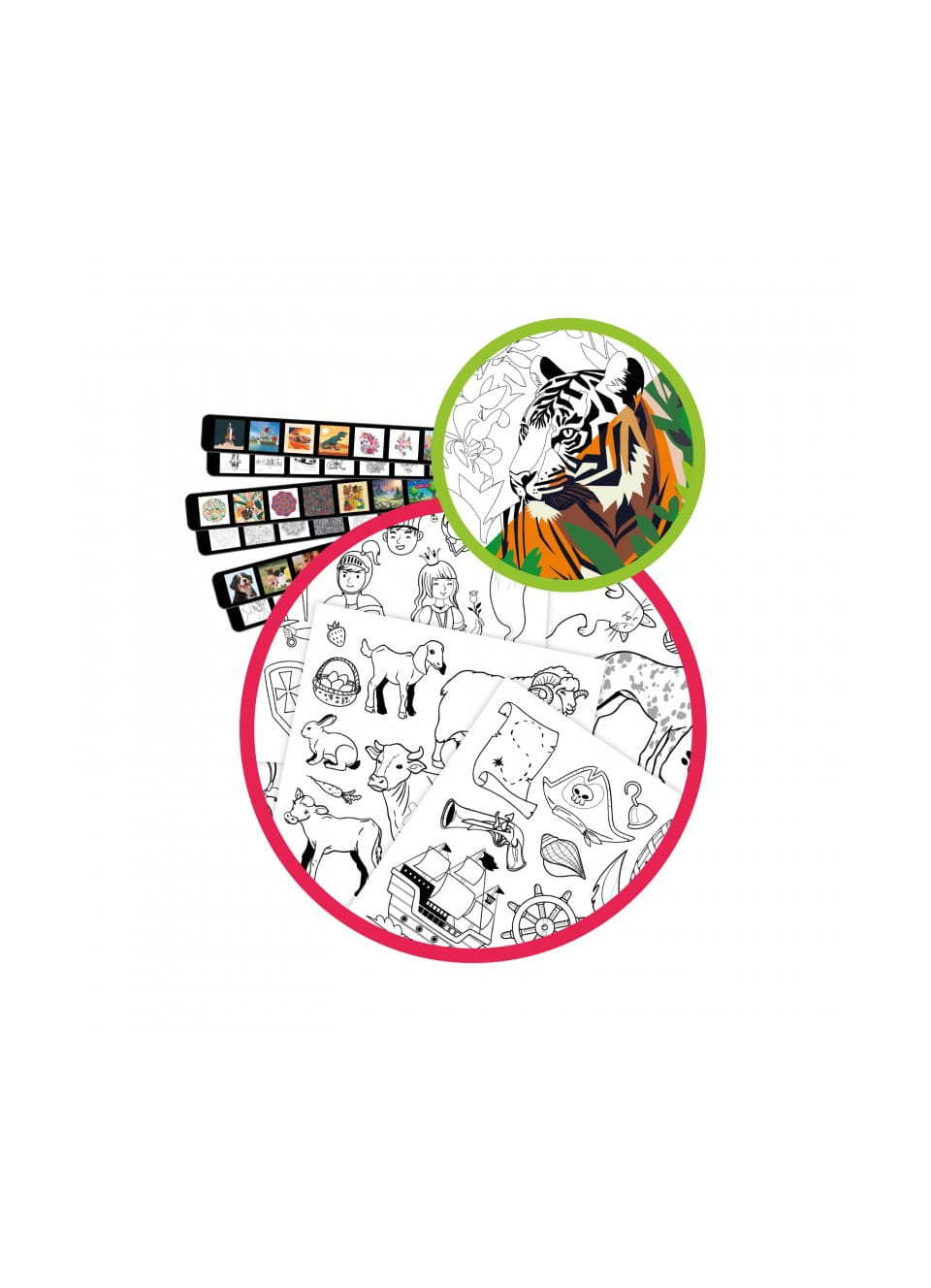 Wystarczy wyświetlić obrazek na kartce papieru, odrysować jego kontur, a następnie przełączyć na wersję kolorową, która posłuży jako inspiracja do dalszej pracy. W zestawie znajduje się aż 30 obrazków oraz 200 dodatkowych wzorów, co daje niemal nieograniczone możliwości twórcze.