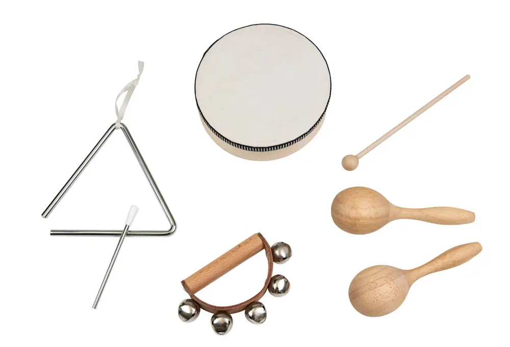 Zestaw instrumentów muzycznych Egmont Toys to idealne wprowadzenie w świat rytmu i dźwięku. W komplecie znajdują się marakasy, tamburyno, trójkąt i dzwonki — wszystko dopasowane do małych rączek. Zestaw rozwija słuch, poczucie rytmu i koordynację ruchową, a naturalne materiały i zaokrąglone kształty zapewniają bezpieczeństwo zabawy. To idealna propozycja dla małych muzyków i całej rodziny.
