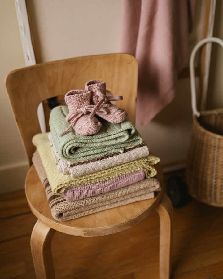 Te kultowe dzianinowe buciki dziecięce są cenione za nienaganne dopasowanie dzięki unikalnej konstrukcji pięty, która zapewnia bezpieczne utrzymanie na małych stopach. Bezszwowa dzianina i wszyte sznurowadła zapewniają dodatkową wygodę. Wełna merynosów pomaga regulować temperaturę, aby małe stopy były utrzymane w optymalnej temperaturze przez wszystkie pory roku. Prezentowane w uroczej bawełnianej torbie, stanowią idealny prezent dla dziecka, łącząc wygodę, funkcjonalność i styl!