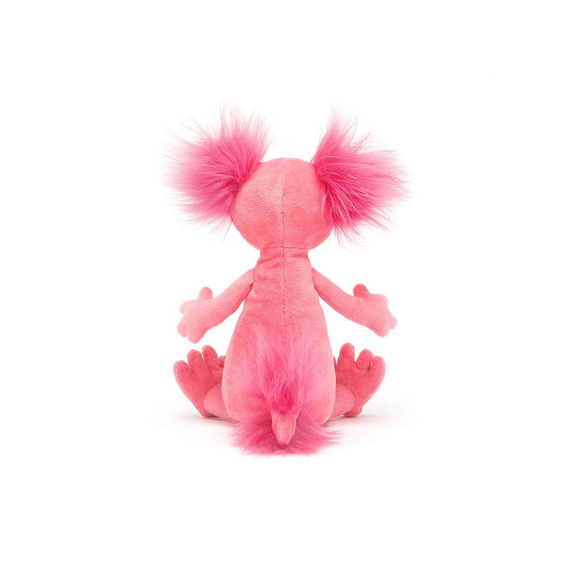 Salamandra Alicja marki Jellycat to bardzo miły i przyjemny w dotyku pluszak. Ten uroczy płaz wodny ma wspaniałe futerko w pysznym kolorze malinowym, miłą mordkę, mięciutki brzuszek, włochate uszka i ogonek oraz duże łapki i stópki. Można się z nim bawić i przytulać. Pluszak został uszyty z najwyższej jakości, trwałych i bezpiecznych dla dzieci materiałów.