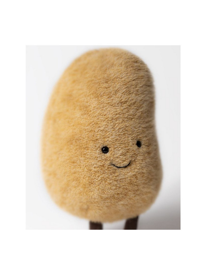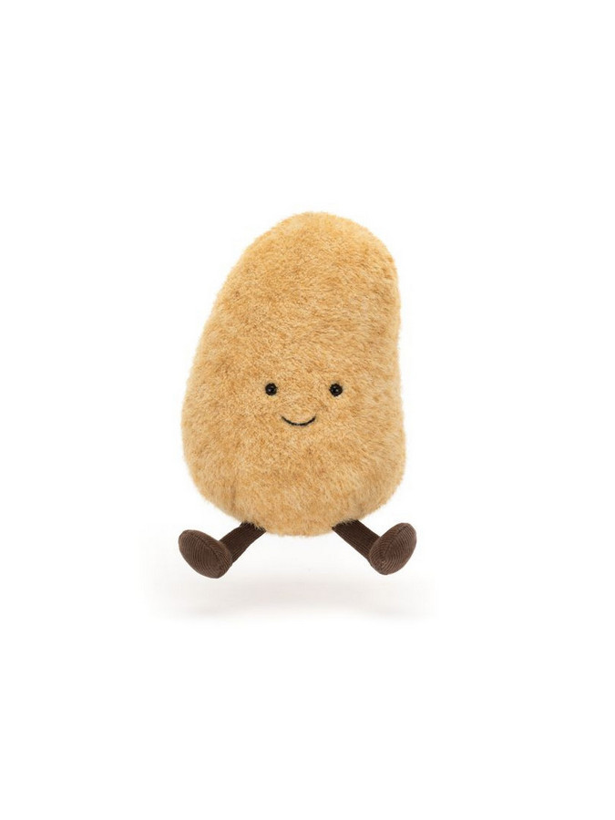 Wesoły Ziemniak marki Jellycat to bardzo mięciutki i przyjemny w dotyku pluszak. Ma wspaniałe futerko w kolorze owsianym, mięciutki brzuszek, wesoły uśmiech i urocze sztruksowe stópki. Ten serdeczny ziemniak lubi bawić i przytulać. Pluszak został uszyty z najwyższej jakości, trwałych i bezpiecznych dla dzieci materiałów.