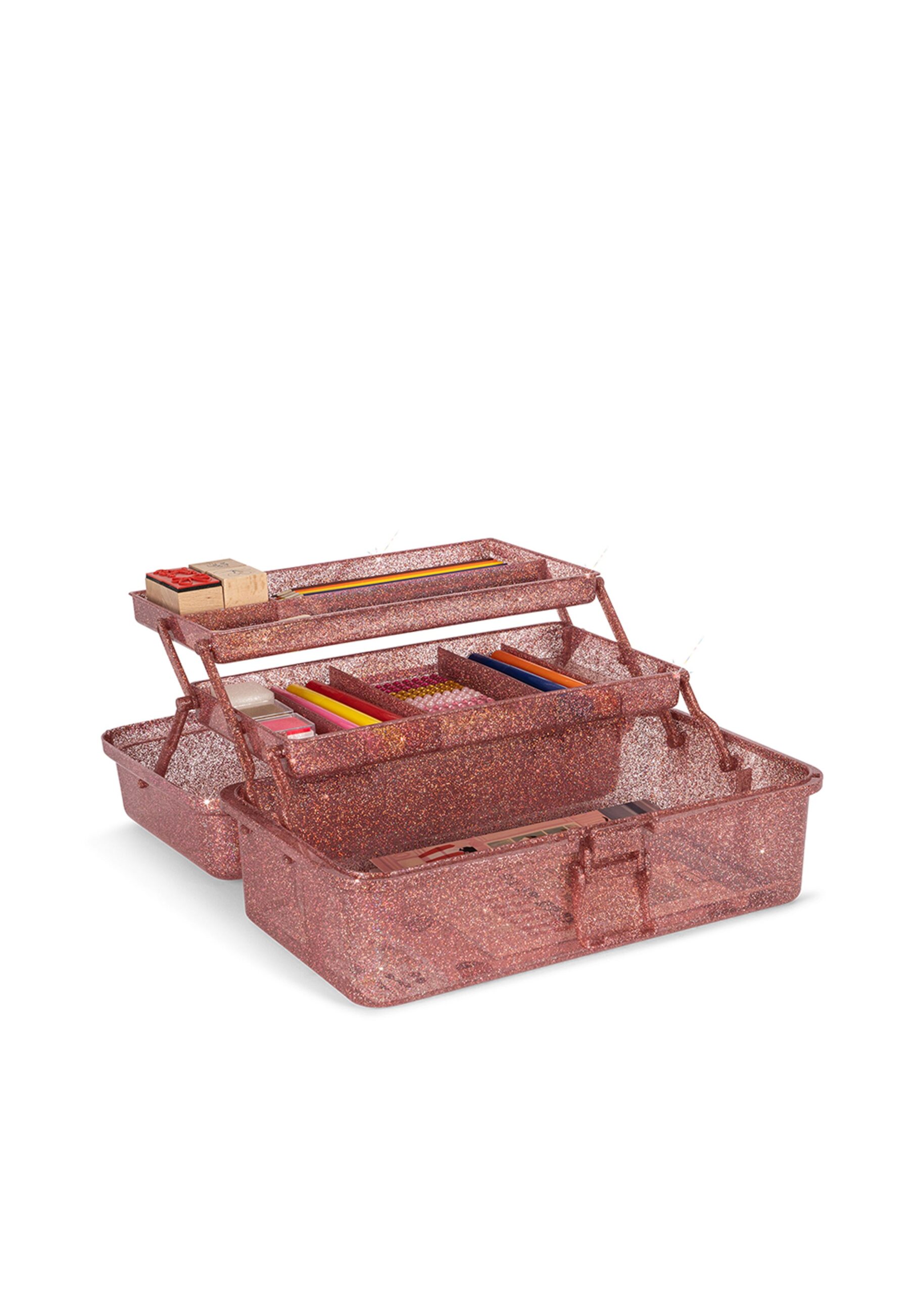 Błyszczący zestaw kreatywny z brokatem, który sprawdzi się zarówno do przechowywania artykułów plastycznych, jak i dekoracji. Będzie idealnym towarzyszem twórczych, jesiennych wieczorów oraz wakacyjnych podróży. Ten kuferek pełen kolorów pobudzi wyobraźnię, zachęci do wspólnej kreatywnej zabawy lub wyciszenia. Sprawdzi się również jako piękny prezent!