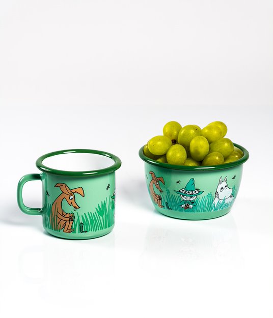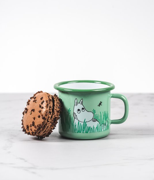 Kubek metalowy retro z kolekcji Muminków marki Muurla z motywem Muminka, Włóczykija i Ryjka to klasyczny przykład skandynawskiego designu połączonego z ponadczasową ilustracją z Doliny Muminków. Trójka ulubionych bohaterów tworzy ciepły, przyjacielski klimat, który idealnie pasuje do codziennych rytuałów z kawą, herbatą lub kakao.