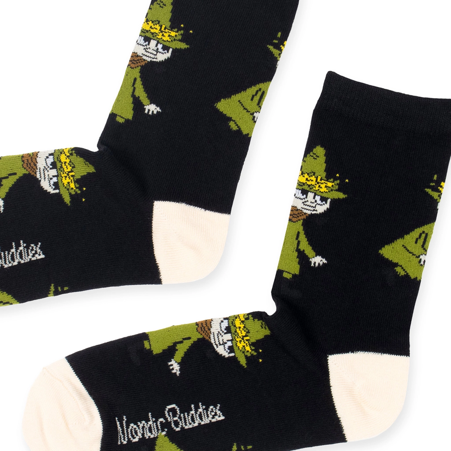 Stylowe skarpetki z motywem Włóczykija w czarnej wersji kolorystycznej to propozycja dla osób, które lubią klasykę z nutą charakteru. Minimalistyczna baza kolorystyczna została przełamana motywem jednej z najbardziej lubianych postaci Muminków.