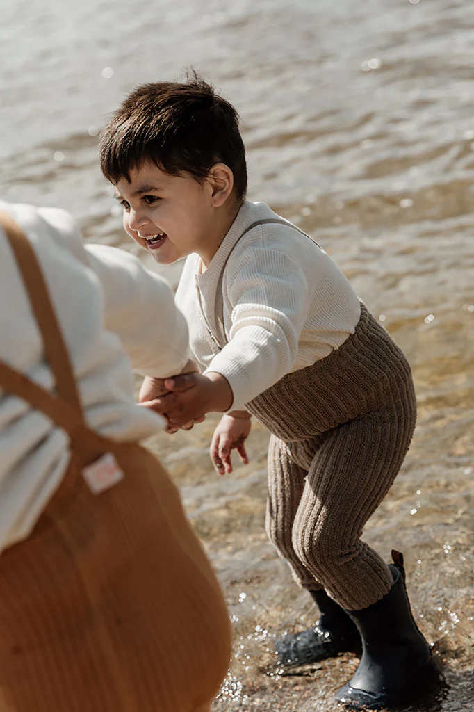 Ważne jest, aby Twoje maleństwo zawsze nosiło rajstopy z szelkami w prawidłowy sposób (jak pokazano na wszystkich naszych zdjęciach) – z jedną szelką bezpiecznie umieszczoną na lewym ramieniu, a drugą na prawym ramieniu, aby uniknąć otarć.