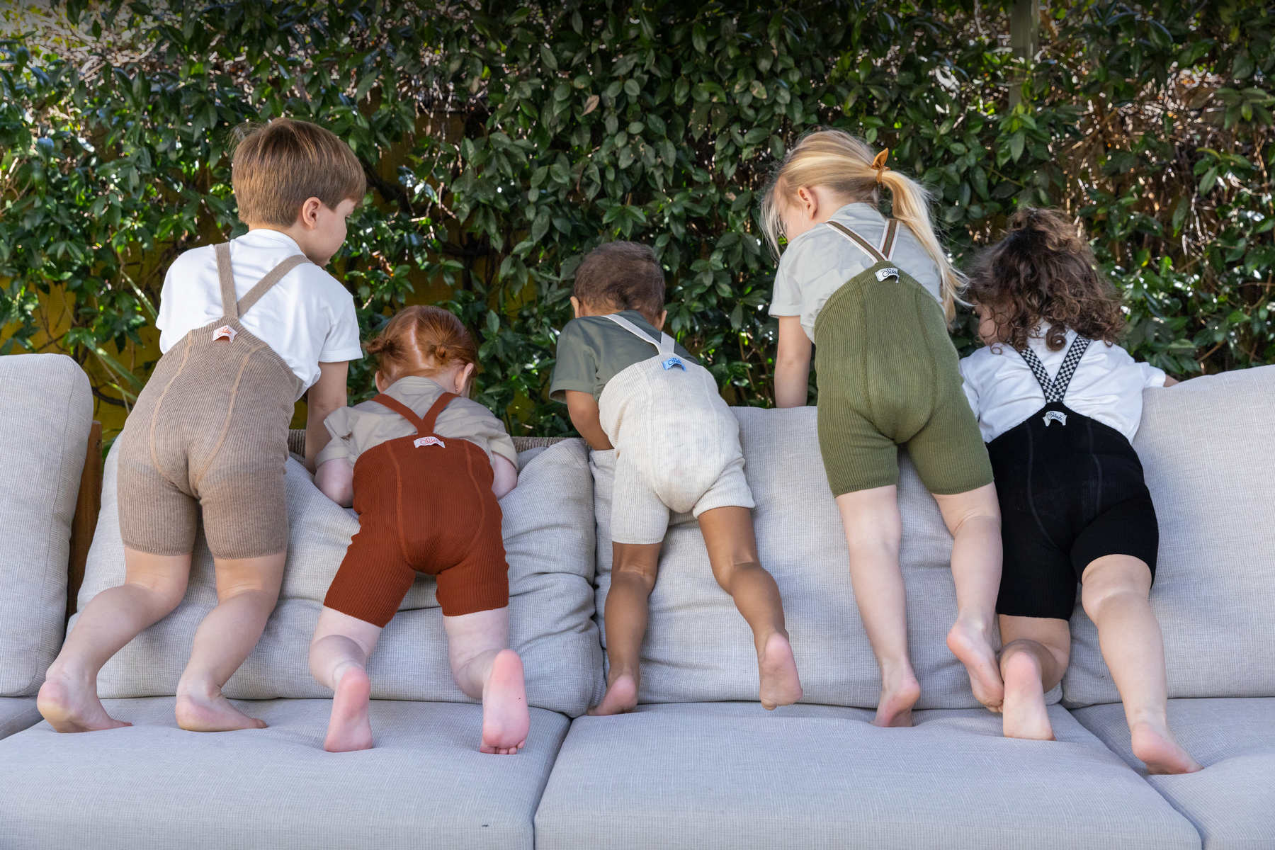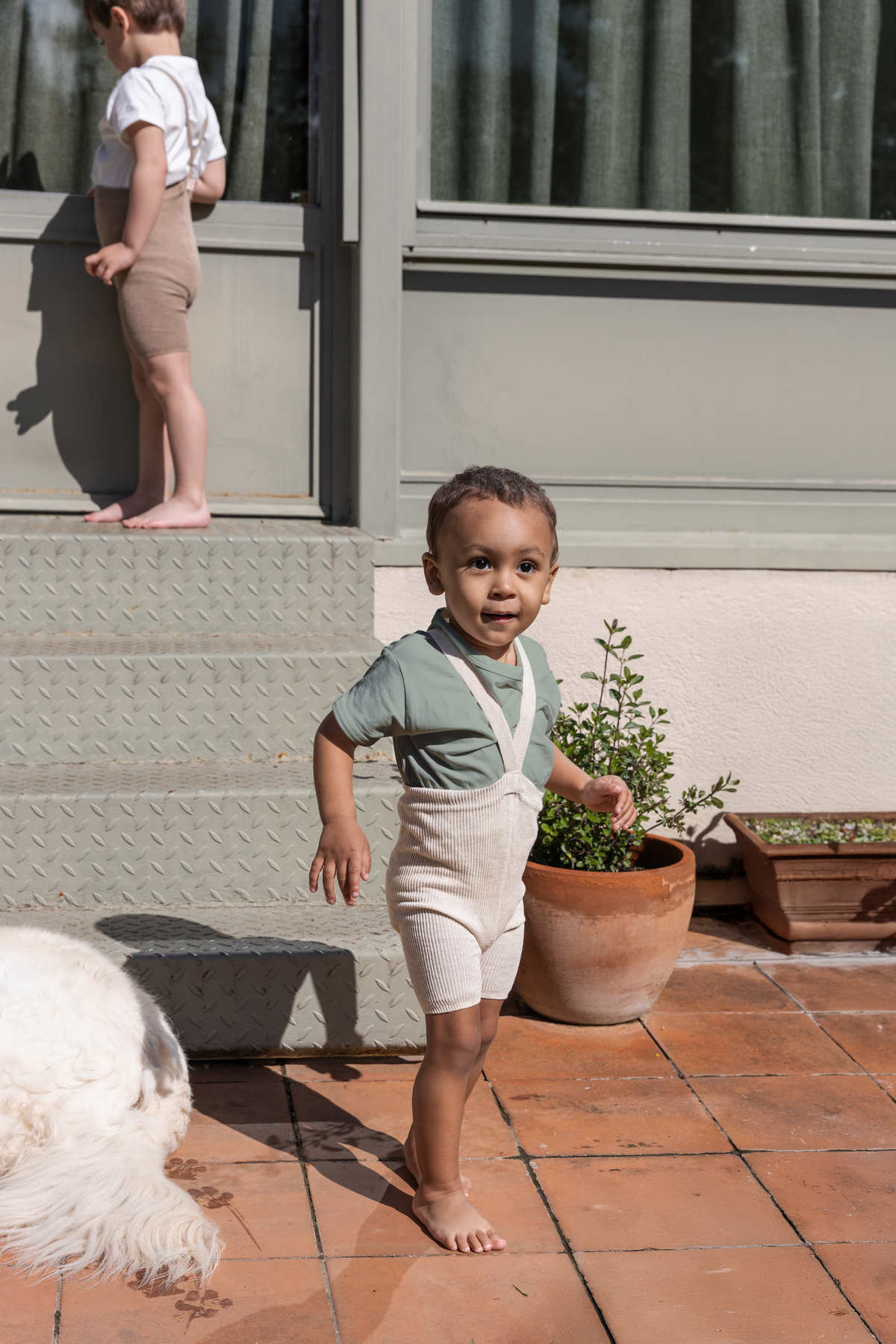 Te szorty są mieszanką beżu, bieli i odrobiny szarości, tworząc kolorystyczne kremowe marzenie! Dzięki temu barwa jest mniej ostra niż czysta biel i łatwiej je dopasować do dziecięcych ubrań.